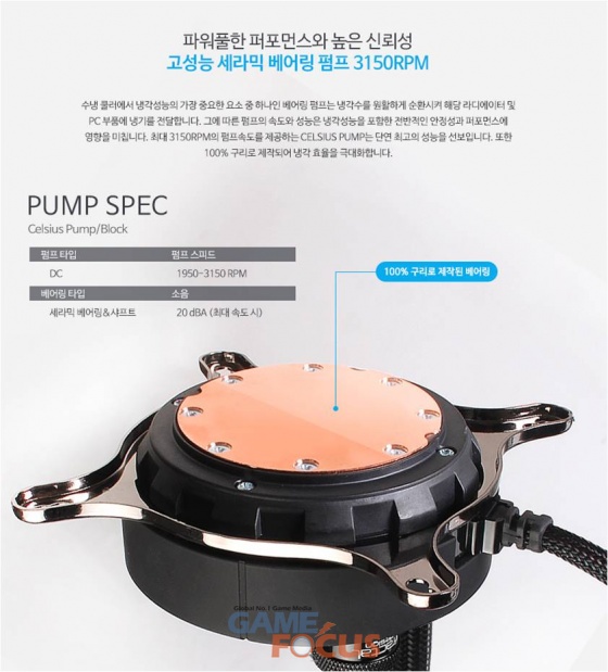 전작 켈빈(KELVIN) 시리즈 대비 3150RPM의 펌프속도를 제공하는 100% 구리로 제작된 펌프는 세라믹 베어링 및 샤프트를 적용해 제품의 신뢰성을 극대화 했으며, 작동 소음을 최소화 하였으며, 두꺼운 직조 구조의 고급스러운 튜브 적용으로 뛰어난 내구성과 시스템 구성 시 고급스러운 느낌을 준다.