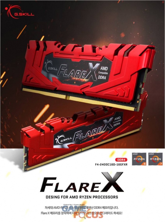 지스킬(G.SKILL)사의 플레어 X (FLARE X) 시리즈는 AMD Ryzen 프로세서를 위해 특별히 설계되고 테스트 된 새로운 DDR4 메모리 시리즈로 AMD의 새로운 아키텍처, 프로세서 및 칩셋을 사용한 하드웨어에서 최적화 된 호환성과 안정성을 위해 설계되었다.