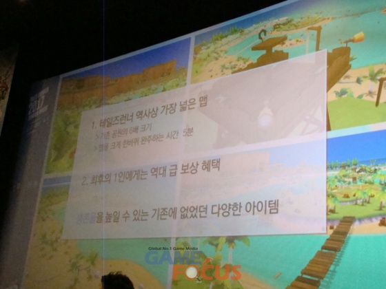 이어 공개된 콘텐츠는 최근 인기를 얻고 있는 '생존 게임'에서 아이디어를 얻어 개발된 '해적섬 서바이벌'이다. 이태준 파트장은 “2016년부터 현재까지 게임 시장의 트랜드는 생존이다”라며 “'테일즈런너'에는 여성 유저분들이 많지만 이러한 '생존 게임'과는 별로 친하지 않은 것 같다고 생각했고, 유저 분들이 좋아하실만한 생존 모드를 개발하기로 했다”라고 의도를 밝혔다.