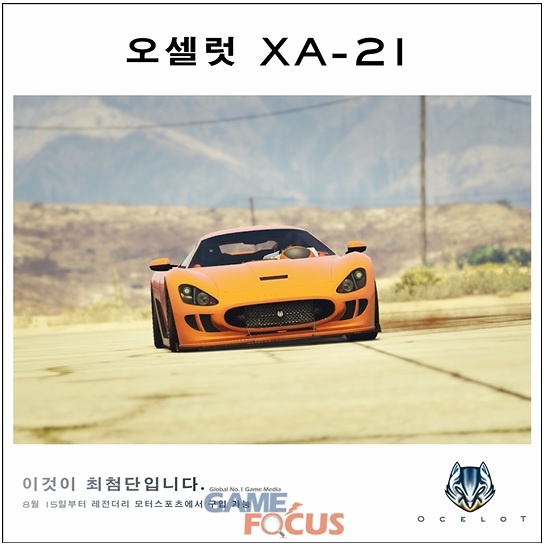 XA-21은 오셀럿의 비밀 지하 연구실에서 만들어진 '괴물 슈퍼카'다. 각종 하이브리드 기술을 쏟아부은 XA-21은 게임 내 '레전더리 모터스포츠'에서 만날 수 있다.