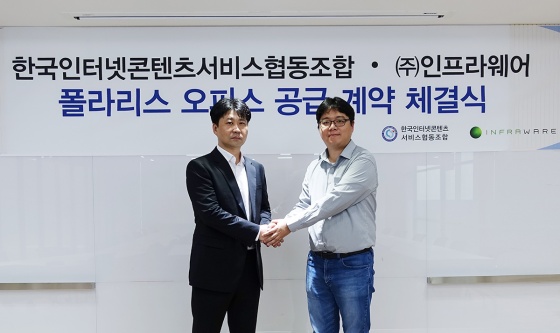 인프라웨어가 한국인터넷콘텐츠서비스협동조합과 '폴라리스 오피스' 공급 계약을 체결했다.