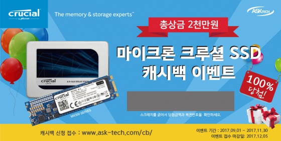 아스크텍 'SSD MX300' 구매고객 대상 2천만원 상당 캐시백 이벤트 진행