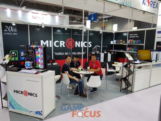 '마이크로닉스 MasterM400'은 마이크로닉스가 설계한 옥타곤 컨셉 디자인으로 네모 형태의 PC 케이스에서 탈피를 꾀한 제품. 차별화된 외형 내부에는 쉬운 조립과 강력한 확장성을 갖췄고 그래픽카드를 수직으로 장착해 멋진 튜닝 연출이 가능한것이 특징이다. 쿨링을 강조한 메쉬 그릴 타입과 스타일을 강조한 아크릴 패널 두 가지 타입으로 국내시장에도 곧 출시될 제품이다. 국내 시장에서 꾸준히 좋은 반응을 얻고 있는 'Frontier H300'과 'Frontier H350', 'Frontier H100' 제품 등 마이크로닉스만의 디자인으로 구성된 다양한 모델들도 전시됐다.