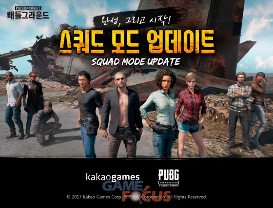 카카오게임즈(각자대표 남궁훈, 조계현)는 28일(화) 카카오 '배틀그라운드'(대표 김창한)에서'스쿼드(Squad)' 모드를 업데이트했다.