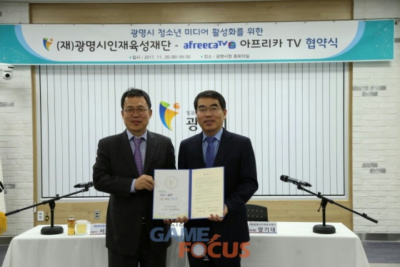 아프리카TV와 광명시인재육성재단은 28일 광명시청 중회의실에서 업무협약(MOU)식을 체결했다. 두 기관은 광명시 청소년 미디어 교육지원과 교육 콘텐츠 활성화를 위해 라이브 방송 및 교육 콘텐츠 개발을 공동 수행하고, 전국 청소년 미디어페스티벌, 인터넷 방송 직업체험 프로그램 개발, 미디어교육 발전 등에 대해 지속적으로 상호협력하기로 했다. 더불어 청소년 교육 콘텐츠 활성화가 필요한 분야에서 적극적으로 협력할 예정이다.