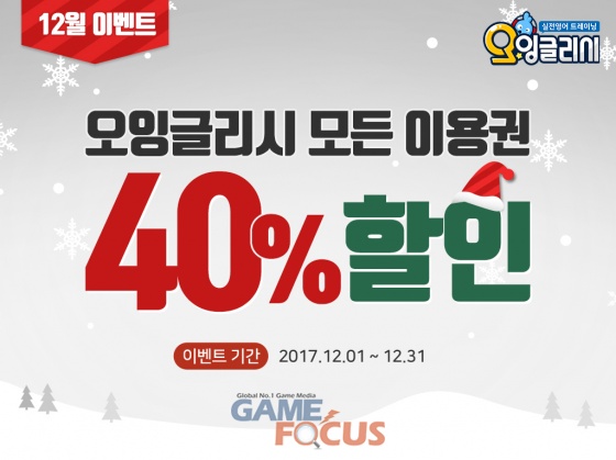 오잉글리시는 12월 안에 이용권을 구매하는 학습자들을 대상으로 30일, 90일, 180일, 연간 이용권 모두 정가의 40% 할인된 가격으로 판매한다.