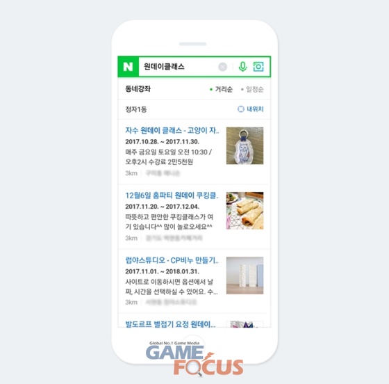 사용자는 모바일 검색창에 '동네강좌' 혹은 '원데이클래스', '캘리그라피강좌', '베이킹클래스', '플라워수업' 등 관련 키워드를 입력하면, 현재 위치에서 가까운 동네 작은 공방·카페·꽃집 등의 강좌 정보들을 한 눈에 살펴볼 수 있다. 이는 추후 PC검색에도 반영될 예정이다.