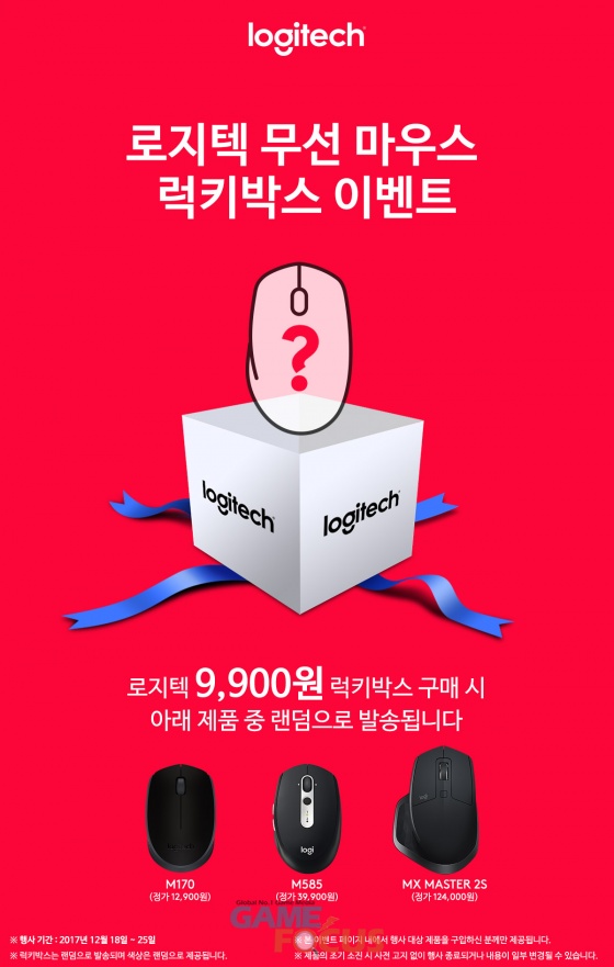 로지텍 코리아(지사장 정철교)는 연말을 맞아 9,900원 럭키박스 구매 시 랜덤으로 제품을 증정하는 ‘무선 마우스 럭키박스 이벤트’를 진행한다고 밝혔다.