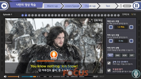 '오잉글리시'는 기존의 영어 인강과는 달리 다양한 학습 콘텐츠에서 영어문장을 듣고 말하면서 배우는 트레이닝 시스템을 강점으로 내세운다. 특히 자동으로 원하는 횟수만큼 대사를 반복해주는 기능은 어느 제품에도 없는 차별점이다.