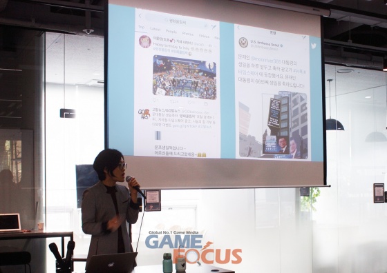 최 이사는 넷마블, 넥슨 등 메이저 게임업체 뿐 아니라 게임 스타트업들이 주요 게임 타이틀로 해외 시장에 승부수를 던지고 있는 가운데, 트위터를 통한 글로벌 시장 마케팅이 성과를 보이고 있다며 다양한 사례를 제시했다. 특히 넷마블의 경우, 한국에서도 유명한 코난 오브라이언의 트윗을 이용해 광고를 집행하여 좋은 성과를 보이기도 했다.
