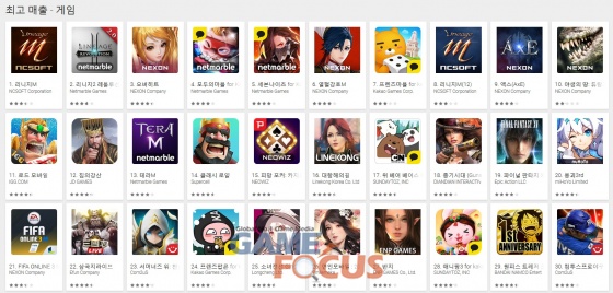 이번 주 구글 플레이 매출 순위에서는 엔씨소프트, 넷마블, 넥슨의 삼파전이 치열하게 벌어지고 있다.