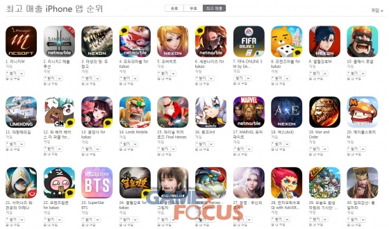 한편, 지난 주 매출 순위 10위를 기록하면서 깜짝 흥행 돌풍을 일으켰던 리듬게임 '슈퍼스타 BTS'는 이번 주 23위로 크게 순위가 하락했으며, 지난 주 12위로 TOP 10 재진입을 노리고 있던 '페이트/ 그랜드 오더'는 픽업 소환 효과가 사라지면서 하락세를 면치 못했다.
