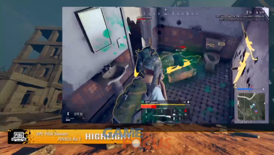 경기 극후반 Talk too much 팀 4DallarOK 선수와 OP.GG 팀 체리 선수의 1대1 구도가 만들어졌다. 서로 엄폐물을 끼고 있는 일촉즉발의 상황, 체리 선수가 잠깐 몸을 내민 4DallarOK 선수를 놓치지 않고 체력을 깎는데 성공하고, 4DallarOK 선수가 체력을 회복하는 사이 가까운 위치로 접근하는데 성공했다.