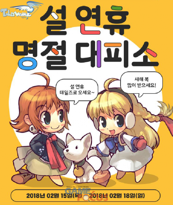 '테일즈위버'에서는 15일부터 18일까지 '경험치 2배', '레어 아이템 획득 확률 2배', '룬 경험치 3배' 등을 제공하고, 접속 캐릭터 마다 본인 캐릭터를 부활시킬 수 있는 '떡국' 아이템 10개를 지급하는 '설 연휴 명절 대피소' 이벤트를 실시한다.
