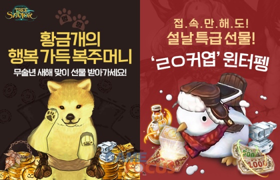 '던전앤파이터'에서는 황금 개띠 해를 맞아 15일부터 19일까지 게임에 접속만 해도 무작위로 '수인 아바타 9부위' 등의 세라 아이템이 주어지는 설날 기념 '복주머니'를 선물하고, 누적 접속일수에 따라 '순수한 황금 증폭서', 'SD 총검사 크리쳐 상자', '오라 아바타 상자'를 추가로 지급한다.
