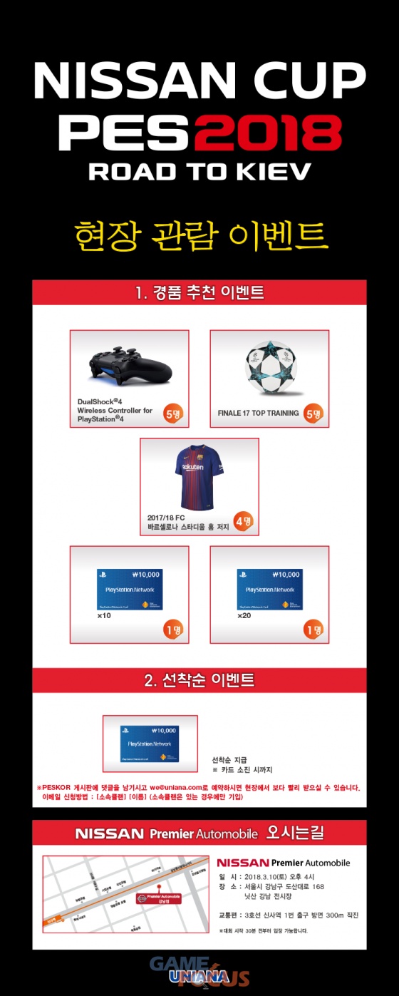 (株)유니아나가 'PES 2018-PRO EVOLUTION SOCCER-(WINNING ELEVEN 2018)'로 펼쳐지는 대회인 'NISSAN CUP PES2018 ROAD TO KIEV 본선(이하 'NISSAN CUP 본선')을 10일 '닛산 강남 전시장(서울 논현동)'에서 개최한다.