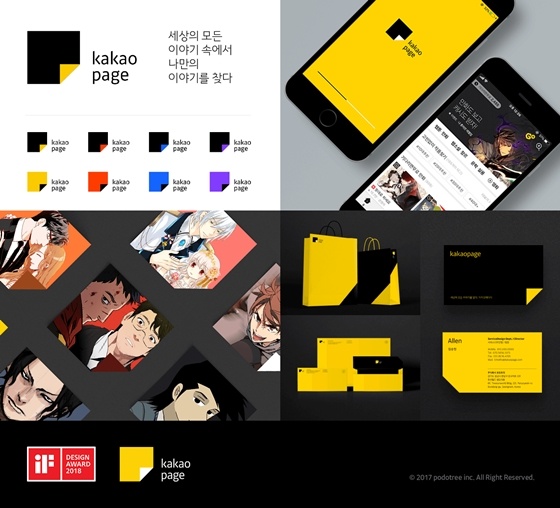카카오페이지는 지난 2017년 1월 브랜드 디자인을 리뉴얼함으로써 수상의 영예를 안았다. 만화, 소설, 영화 등 3만 5천 여개의 다양한 콘텐츠를 담고 있는 종합 플랫폼이라는 강점을 강조하고 '세상 모든 이야기 속에서 나만의 이야기를 찾다' 라는 콘셉트를 추구하고 있다.
