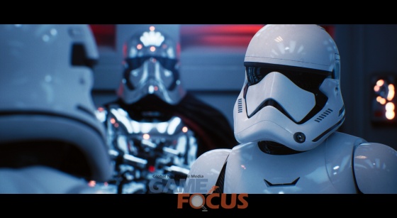 테크 데모에서는 '스타워즈: 라스트 제다이'의 애셋을 사용해 크롬 갑옷을 입고 퍼스트 오더 함선의 엘리베이터에 탑승한 파스마 대위를 향해 스톰트루퍼 2명이 달려가는 장면을 실시간 레이 트레이싱 기술로 제작해 선보였다.