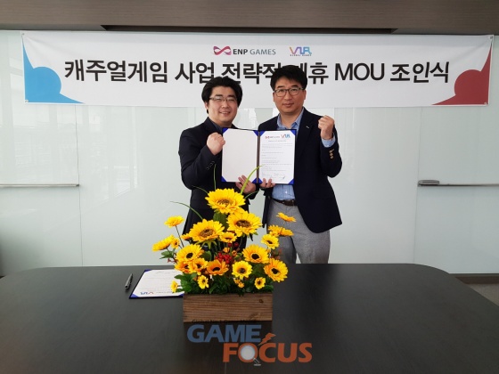 ㈜이엔피게임즈(대표 이승재)가 캐주얼 모바일게임 전문 개발사 브이투알(V2R, 대표 이태한)과 캐주얼 게임 사업 전략적 제휴에 대한 업무협약(MOU)을 체결했다.