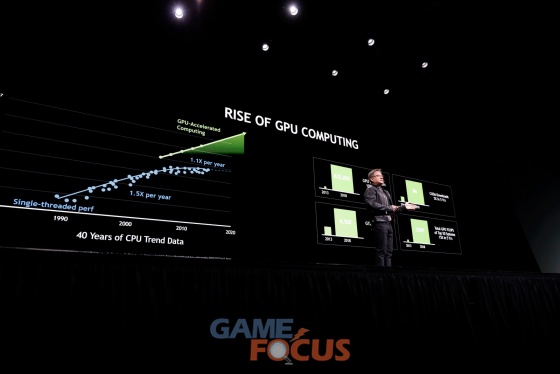 젠슨 황 CEO는 GTC 2018에서 자사의 세계 정상급 딥 러닝 컴퓨팅 플랫폼에 대한 성능 개선 사항을 연이어 공개하며, 딥 러닝 워크로드 면에서 6개월 만에 이전 세대 대비 10배의 성능 개선을 이뤄냈다고 발표했다. 기조연설에서 이에 대해 설명하며, "이번에 발표하는 딥 러닝 분야의 발전은 앞으로 펼쳐질 미래를 살짝 엿본 수준에 불과하다"라며 "우리는 엔비디아의 딥 러닝 플랫폼의 성능을 무어의 법칙을 압도적으로 능가하는 속도로 강화해 나가고 있어, 헬스케어, 교통, 과학 탐구 및 기타 수많은 영역에서 획기적인 변혁을 이끌 돌파구를 만들고 있다"라고 말했다.