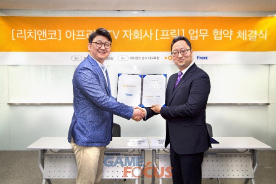 아프리카TV 자회사 프릭은 13일 리치앤코와 인터넷방송 '굿리치TV' 개국을 위한 업무협약을 체결했다. '굿리치TV'는 올해 5월 중 모든 준비를 마치고 아프리카TV를 통해 서비스 될 예정이다.