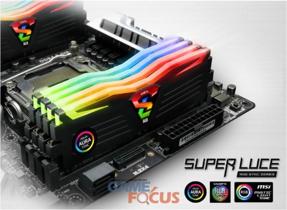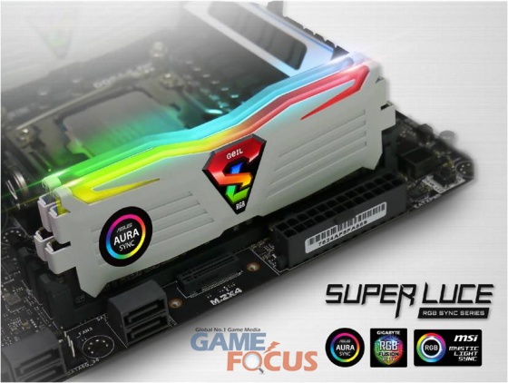 슈퍼루스 RGB Sync(SUPERLUCE RGB Sync) 시리즈 메모리는 이번 업데이트를 통해 사용자의 취향과 컨셉에 따라 다이나믹 한 RGB LED 조명을 제공하는 ASUS AURA Sync 와 GIGABYTE FUSION RGB, 그리고 MSI MYSTIC LIGHT 3사의 공식 인증 DDR4 LED 조명을 가진 제품으로, RGB 소프트웨어를 통해 메인보드 RGB LED 조명 효과를 메모리 RGB 조명으로 동일하게 구현 하여 마더보드사의 소프트웨어를 통해서 LED 색상 변경 및 LED 모드 변경 등을 통해 지연현상 없이 마더보드와 완벽한 싱크로율로 튜닝 효과를 보여준다.