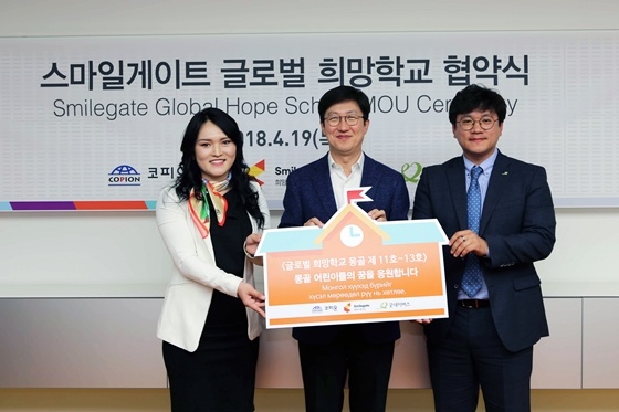 스마일게이트 희망스튜디오(이사장 권혁빈, 이하 희망스튜디오)가 국제 NGO 단체 굿네이버스(회장 양진옥) 및 코피온(총재 이배용)과 몽골 내 소외지역 학교 3곳에 IT 교육 인프라 구축과 이를 통한 아동청소년들의 콘텐츠 창작 교육을 지원하는 '글로벌 희망학교' 11호~13호를 설립한다.