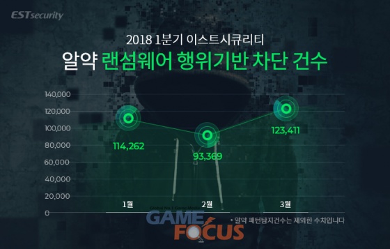 이스트소프트의 보안 자회사 이스트시큐리티(대표 정상원)가 2018년 1분기 알약을 통해 총 33만 1,042건의 랜섬웨어 공격이 차단되었다고 밝혔다.
