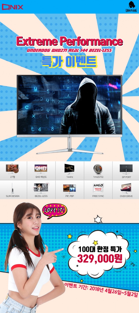 디스플레이 브랜드 큐닉스(경성GK 대표 김준길)가 QHD 게이밍 모니터인 'QHD271 REAL 144 BEZEL-LESS' 모델의 특가 이벤트를 실시한다.