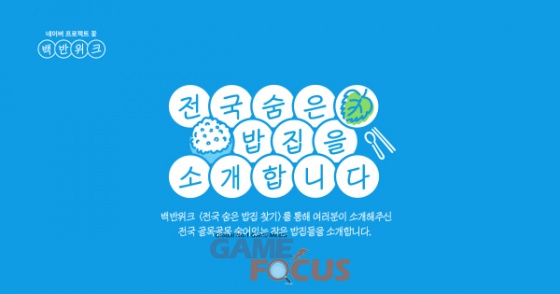 네이버 백반위크는 일상에서 익숙하게 만나는 우리동네 밥집이 주인공이다. ‘5천원 백반’, ‘대학가 단골 밥집’, ‘우리동네 시장 밥집’ 등 총 3가지 테마로 진행된다. 이용자들이 직접 소개한 꼼꼼한 리뷰와 더불어 밥집의 대표 메뉴, 장소, 가격 등 그동안 온라인을 통해서 쉽게 확인하기 어려웠던 밥집 정보들을 확인할 수 있다. 모바일 ‘백반위크 지도’를 통해 내위치정보를 설정하면, 지역에 따라, ‘아이들도 좋아하는 울산 보리밥집’, ‘동명대 가성비 최고 밥집’, ‘광주 송정동 시장국밥집’ 등 지역별 밥집을 한 눈에 확인할 수도 있다.