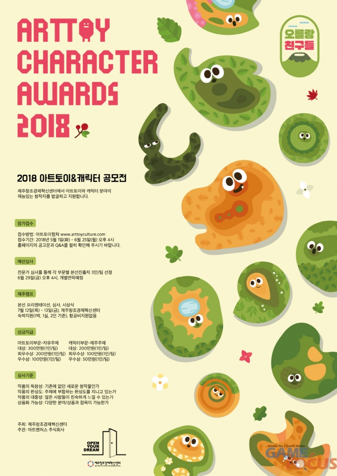 공모전은 오는 6월 25일까지 진행되며 아트토이와 캐릭터에 관심 있는 대한민국 국민 누구나 신청 가능하다. 공모는 두 분야로 아트토이 부문은 자유 주제, 캐릭터 부분은 제주를 주제로 한다.