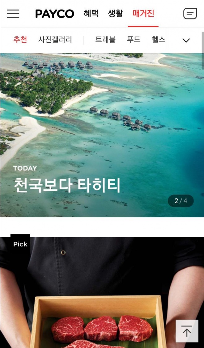'페이코 매거진'은 의식주에 기반한 라이프 컨텐츠를 큐레이팅해 제공하는 프리미엄 콘텐츠 서비스로, 분야별 전문 큐레이터가 엄선한 '추천' 코너와 고화질 사진 중심의 컨텐츠 '사진갤러리', 트래블, 푸드, 헬스 등 주제별 전문 코너로 구성됐다.