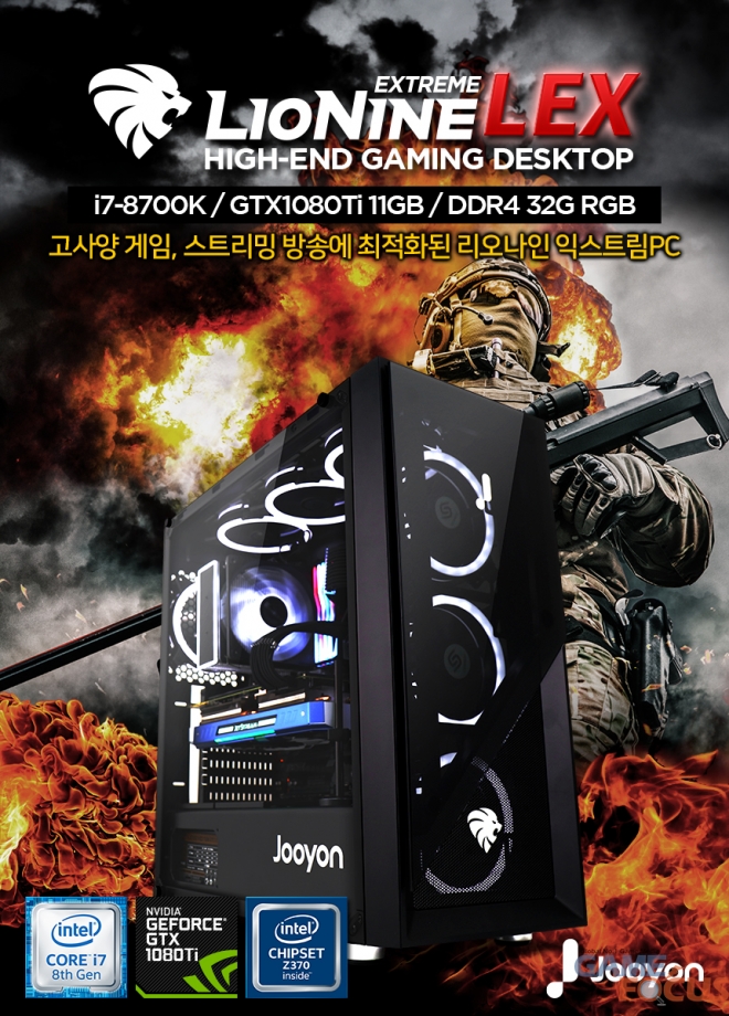 '리오나인 익스트림'은 기존 주연테크 게이밍 브랜드 '리오나인'의 스핀오프 브랜드로, 이번 출시한 리오나인 익스트림 LEX 10G는 8세대 인텔 코어 K프로세서 i7-8700K를 탑재, 인텔 Z300칩셋 메인보드를 통해 오버클럭이 가능하며 현존하는 가장 강력한 게이밍 그래픽 카드 지포스 GTX 1080ti를 적용해 검증된 퍼포먼스는 물론 코어 온도에 따라 색상이 변하는 온도 반응형 RGB LED를 자신의 스타일에 맞춰 설정할 수 있다.