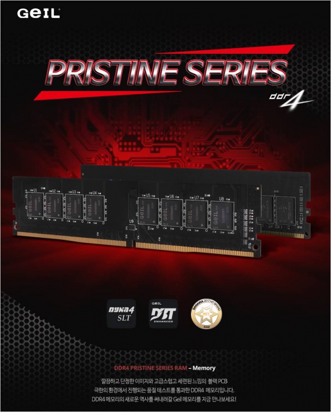 게일(GeIL)사의 'DDR4 프리스틴(PRISTINE) 2666MHZ(21300)' 클럭 시리즈는 인텔 8세대 코어 프로세서의 지원 클럭이 2666MHZ(21300) 클럭을 기본으로 지원함에 따라 출시된 8세대 코어 프로세서와 호환이 가능한 제품이다.