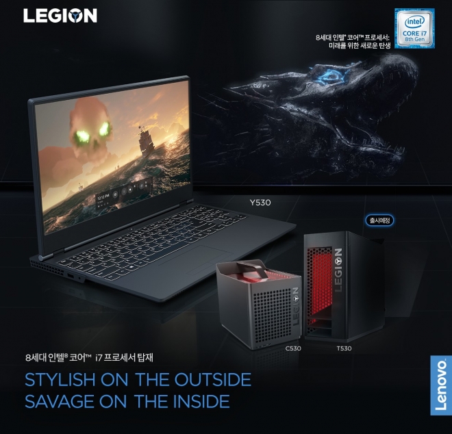 리전 T530 데스크톱과 리전 C530 큐브형 PC는 인텔 8세대 i7 코어 프로세서, 엔비디아 지포스 GTX 1060 그래픽을 적용해 고사양 게임뿐만 아니라 VR 콘텐츠, 4K 스트리밍을 자유롭게 즐길 수 있도록 지원한다. 듀얼 채널 냉각 시스템을 장착해 빠른 시간 내 열을 배출할 수 있도록 했고 시스템 진동과 소음을 감소시켰다. 내부에는 붉은색의 LED 조명 효과를 적용했다.