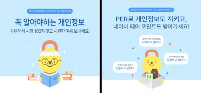 네이버는 이용자들이 개인정보보호에 대해 직접 알아보고 참여할 수 있는 ‘개인정보&프라이버시 보호 100% 달성 프로젝트’ 이벤트를 7월 한 달간 진행한다. 이벤트는 이용자들의 개인정보&프라이버시 지식 테스트와 인식향상을 돕는 ‘Step1’과 네이버 서비스의 프라이버시 보호수준을 향상하는데 도움이 되는 아이디어나 제안을 받는 ‘Step2’로 이루어진다.