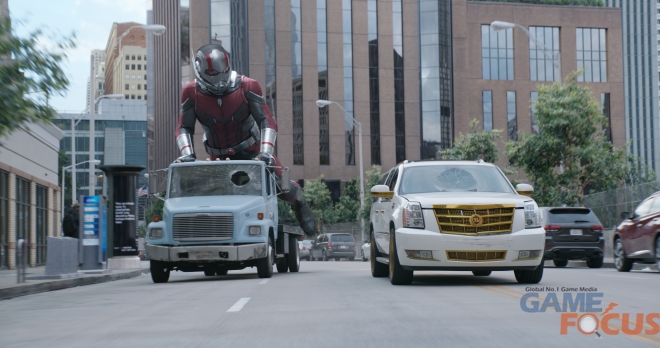 영화의 배경인 언덕과 오르막, 내리막길이 끝없이 이어지는 샌프란시스코의 거리에서 실제로 진행된 현란한 카체이싱 액션은 '앤트맨과 와스프'의 관전 포인트 중 하나다. 이때 커졌다 작아졌다 하면서 사이즈를 자유자재로 조절하는 현대자동차 '벨로스터'를 타고 샌프란시스코 거리를 무한 질주하는 카체이싱 장면은 세계 영화 팬들을 매료시킬 전망이다.