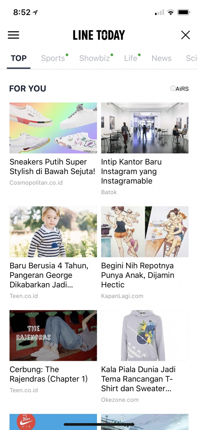 라인 투데이에 AiRS를 적용한 'For You powered by AiRS'(국가마다 표기 다름)는 별도로 구성된 영역을 통해 이용할 수 있다. 해당 영역을 통해 라인 투데이는 글로벌 사용자들의 콘텐츠 소비 패턴과 개인별 관심사를 분석하여 이에 따른 콘텐츠를 자동으로 추천한다. 네이버 측은 라인 투데이 모바일에 콘텐츠 추천 시스템을 우선 적용하고 향후 PC 버전에도 적용해나갈 예정이다.