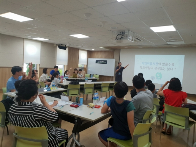참가자들은 ▲가족 소통의 시간 ▲올바른 게임 이용 방법(학부모/자녀 분리 교육) ▲내가 하는 게임 분석하기 ▲내·겜·소(내가하는 게임을 소개 합니다) ▲온 가족이 함께하는 게임 체험 및 모의 등급분류회의 ▲건강한 게임 이용을 위한 시간관리 방법(동의대 황두경 교수) ▲우리 함께 약속해요 등 소통교육과 인식개선을 위한 내용으로 구성된 다채로운 프로그램을 수행했다.