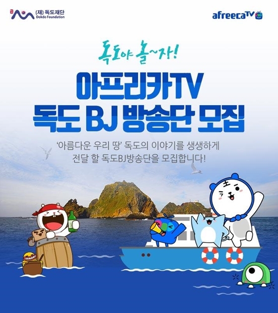 아프리카TV는 7월 27일까지 '독도'를 주제로 다양한 콘텐츠를 만들어 갈 '독도BJ방송단'을 모집한다고 밝혔다. 아프리카TV는 지난 6월 28일 재단법인 독도재단과 독도 홍보 강화를 위해 업무 협약을 맺은 바 있다.