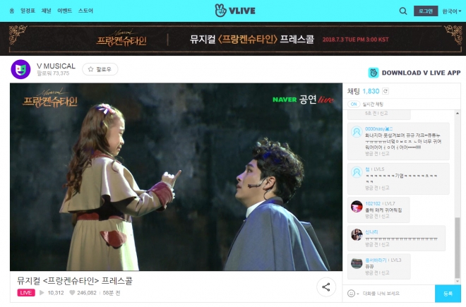네이버는 2015년 6월 뮤지컬 '데스노트' 쇼케이스 방송을 시작으로 온라인 공연 생중계를 시작해, 지난 3년간 네이버TV와 V LIVE을 통해 총 157개의 공연을 라이브했다.