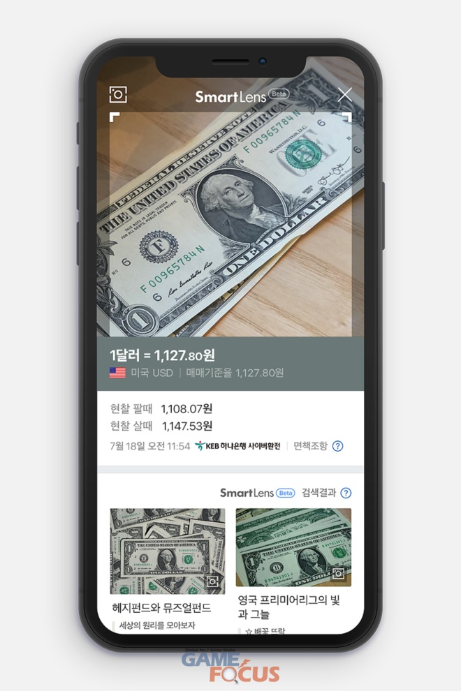 이어 외화와 와인 인식 기능을 추가로 적용함으로써, 스마트렌즈 카메라로 외화 지폐나 와인병을 찍기만 하면 각각 관련 환율정보(매매기준율, 현찰 구매가 혹은 판매가, 등)와 와인정보(와인 종류, 포도 종류, 생산지 등)를 실시간으로 접할 수 있게 됐다.