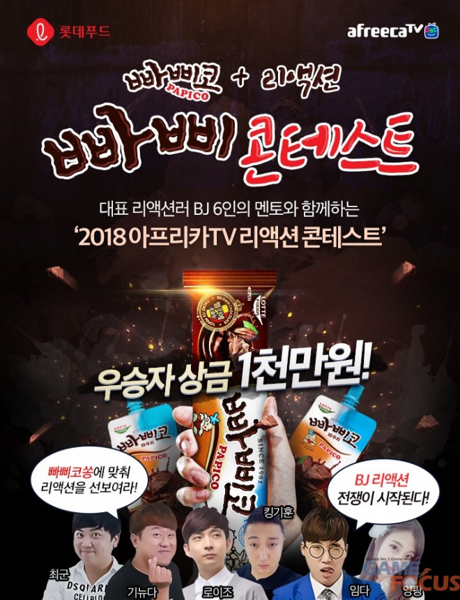 아프리카TV가 오는 7월 26일부터 8월 25일까지 약 한 달 동안 롯데푸드와 함께하는 '빠삐콘테스트'를 진행한다. '빠삐콘테스트'는 대중에게 친숙한 빠삐코 CM송에 맞춰 최고의 리액션을 보여준 BJ를 선발하는 콘테스트이다.