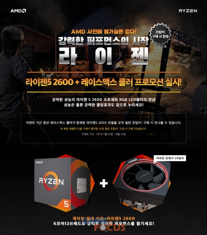 컴퓨존(대표 노인호)이 '라이젠 5 2600 프로세서' 구매 시 '레이스 맥스(Wraith MAX)' 쿨러를 제공하는 프로모션을 진행한다.