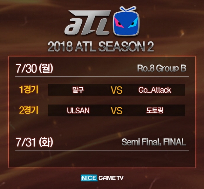마지막 4강 진출자를 가리는 8강 B조의 대결은 ‘죽음의 조’ 경기로, 30일 (월) 오후 8시에 열린다. 1경기는 ‘말구’와 ‘Go_Attack’이 대결하며, 2경기는 ‘ULSAN’과 ‘도토링’이 맞대결을 펼친다. 연이어, 쟁쟁한 상대들을 뚫고 올라온 최후의 4인들이 맞붙는 4강전과 대망의 결승전이 7월 31일 (화) 오후8시부터 진행된다. 8강부터 4강 경기는 5전 3선승제 듀얼 토너먼트 방식으로 진행되며, 결승전은 7전 4선승제로 치러진다.