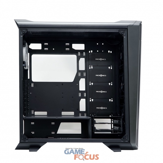 Master T8000의 주요 특징 중 하나는 넓은 내부 확장성이다. Master T8000에는 2개의 HDD 장착이가능한 하드브라켓을 최대 4개까지 별도장착이 가능해 총 10개의 HDD를 장착할 수 있다. 또한 메인보드 장착부 후면의 SSD 브라켓, 그리고 기본 하드브라켓에 장착된 SSD 브라켓을 통해 3개의 SSD를 장착할 수 있다. Master T8000의 하드베이는 SSD와 공용 사용이 가능하기 때문에 유저 환경에 따라 유연한 스토리지 베이 활용이 가능하다. 추가적인 하드베이브라켓은 마이크로닉스 공식 오픈마켓을 통해 판매될 예정이다.