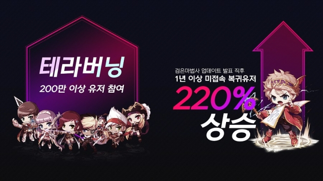 '검은마법사' 업데이트는 기존 유저는 물론 신규 유저, 오랫동안 게임에 접속하지 않았던 이전 유저들에게까지 폭발적인 호응을 얻었다. 6월 16일 '검은마법사' 등장 소식이 공개된 직후 첫 주에는 전주 대비 1년 이상 미 접속한 유저 기준으로 복귀유저가 220%이상 증가했고, 신규 캐릭터 육성을 지원하고자 최대 200레벨까지 빠른 레벨업 혜택을 제공하는 '테라 버닝' 이벤트에는 200만 이상 유저가 몰렸다(레벨 200이상 유저는 '검은마법사'가 등장하는 '아케인 리버' 중 '테네브리스' 마지막 지역에 입장할 수 있다).