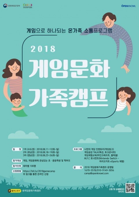한국콘텐츠진흥원(KOCCA)이 8월 11일부터 총 3회 차에 걸쳐 1박 2일 하계 '게임문화 가족캠프'를 개최한다.
