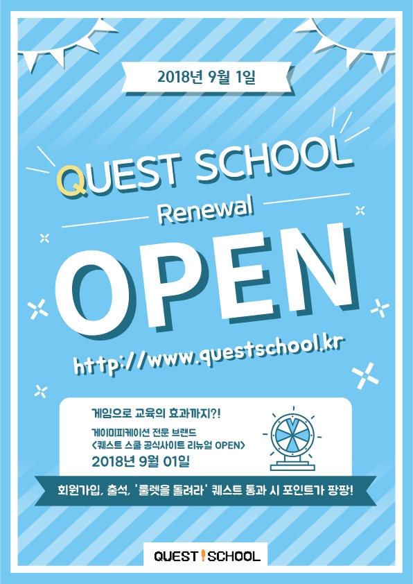 퀘스트 스쿨은 리뉴얼한 공식사이트에도 게이미피케이션 요소를 도입했다. 사이트 내 커뮤니티를 활성화하기 위한 포인트 정책을 만들어 회원가입, 출석, 퀘스트 통과 등에 따라 포인트를 지급한다. 이를 통해 제품 구매시 할인을 받거나 교안을 다운로드 받을 수 있다. 사이트 리뉴얼을 기념해 퀘스트스쿨의 보드게임을 할인된 가격으로 구매할 수 있는 이벤트도 진행된다. 9월 7일부터 10일간 공식 페이스북에서 할인 쿠폰을 발행해 10% 할인된 가격에 전제품을 만나 볼 수 있을 예정이다.