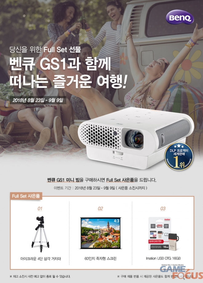 벤큐(지사장 소윤석)가 자사의 휴대용 LED 프로젝터 GS1 제품을 구매하는 고객을 대상으로 사은품을 증정하는 이벤트를 실시한다.